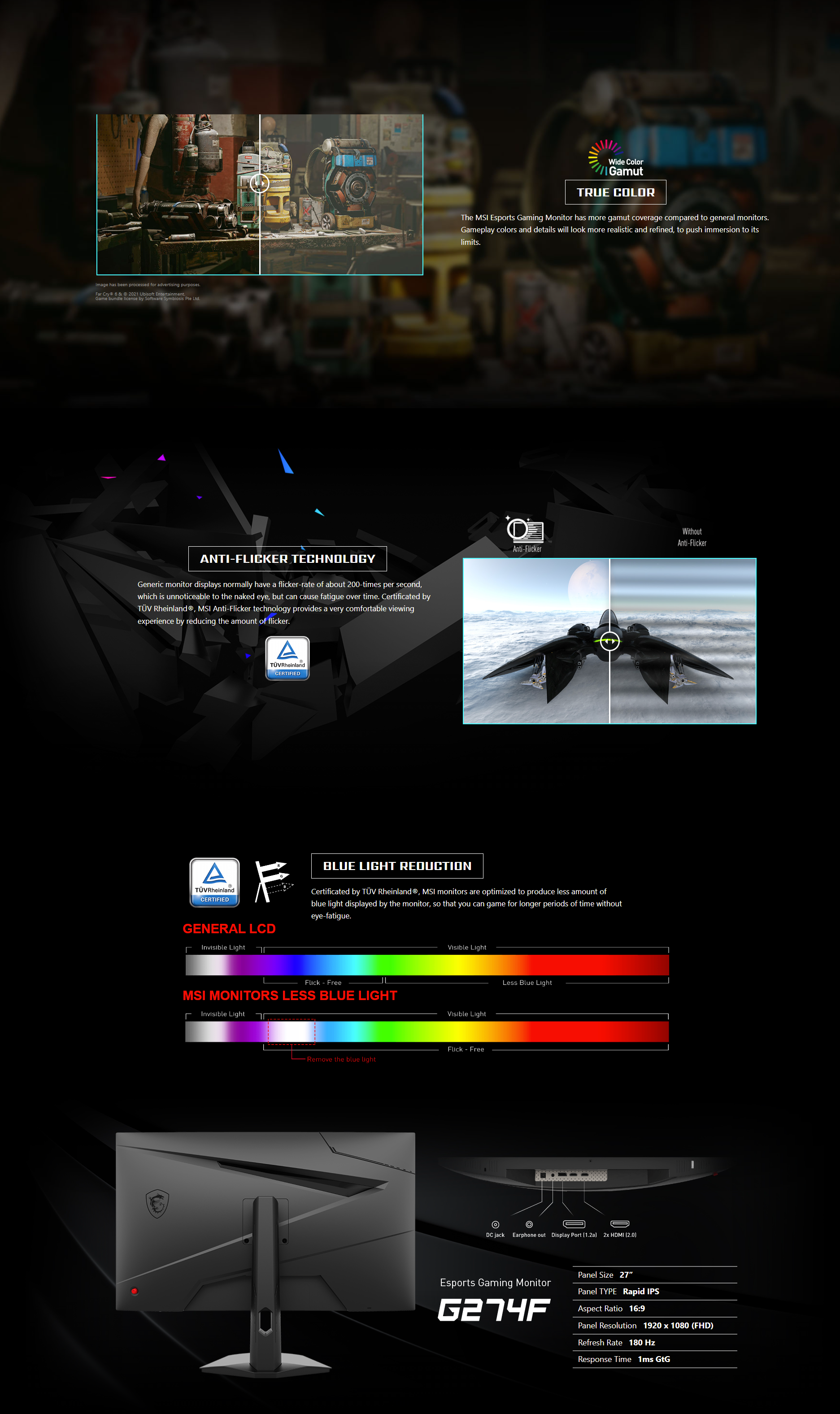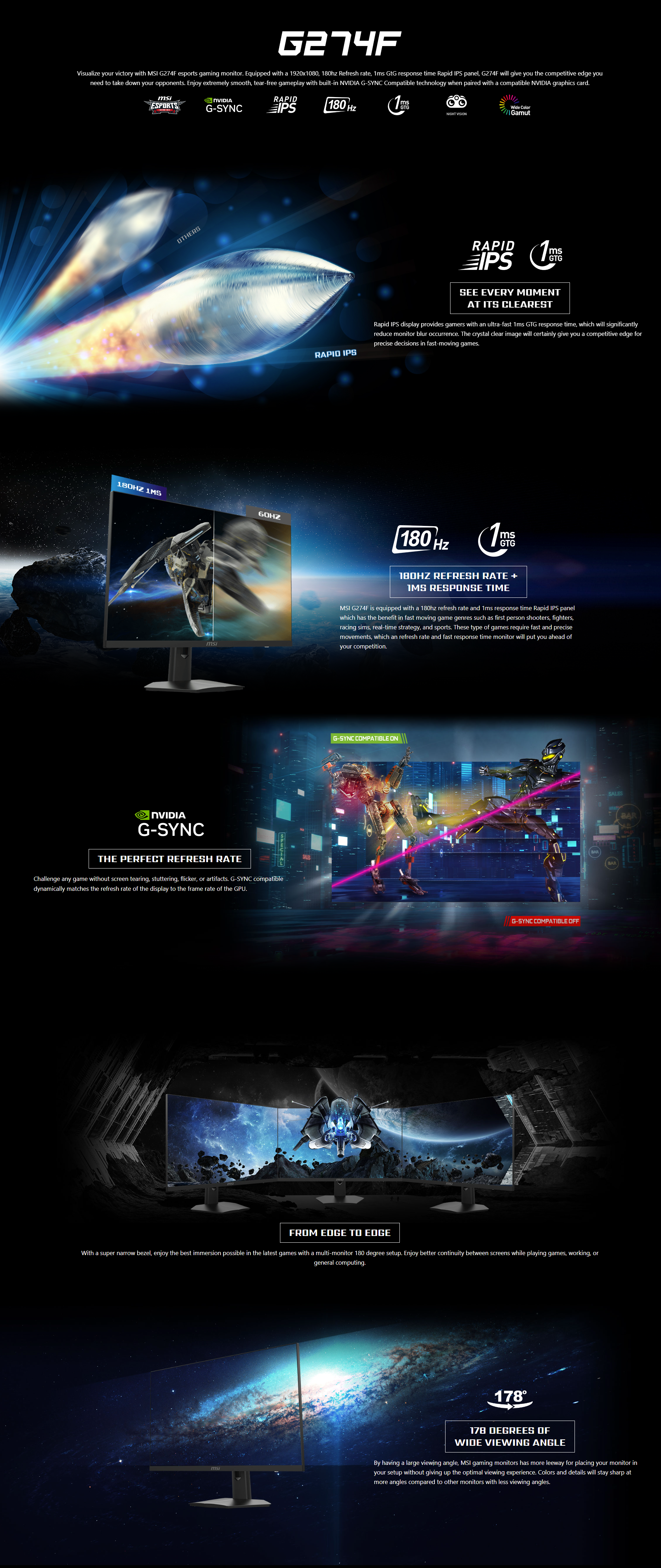 รายละเอียดสินค้า Monitor 27 MSI Optix G274F (IPS,HDMI, DP) 180Hz FreeSync